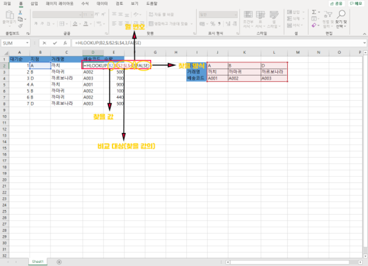 원하는 열(VLOOKUP), 행(HLOOKUP)에